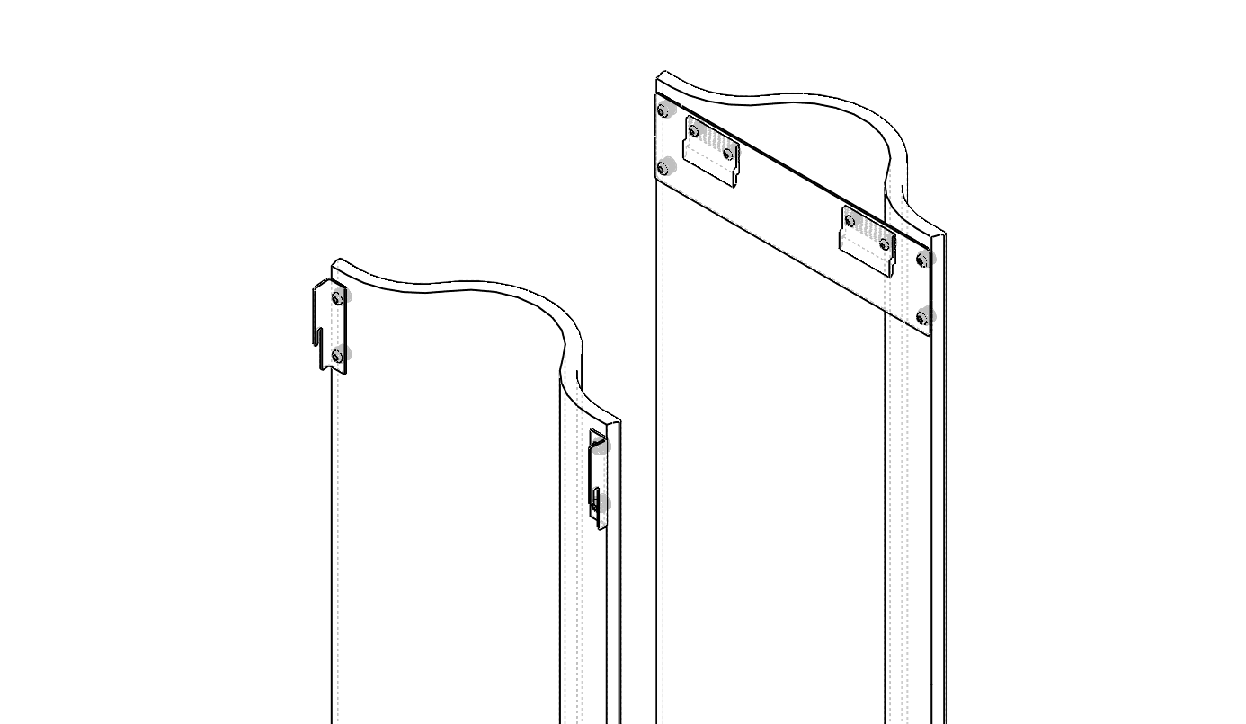 Designing for Mass Production To prevent the need to make multiple molds of the plastic panels, I designed a hardware mounting system that would apply for various conditions. The panel on the left shows system for flat section of wall, and the panel on the right is for the curved section.