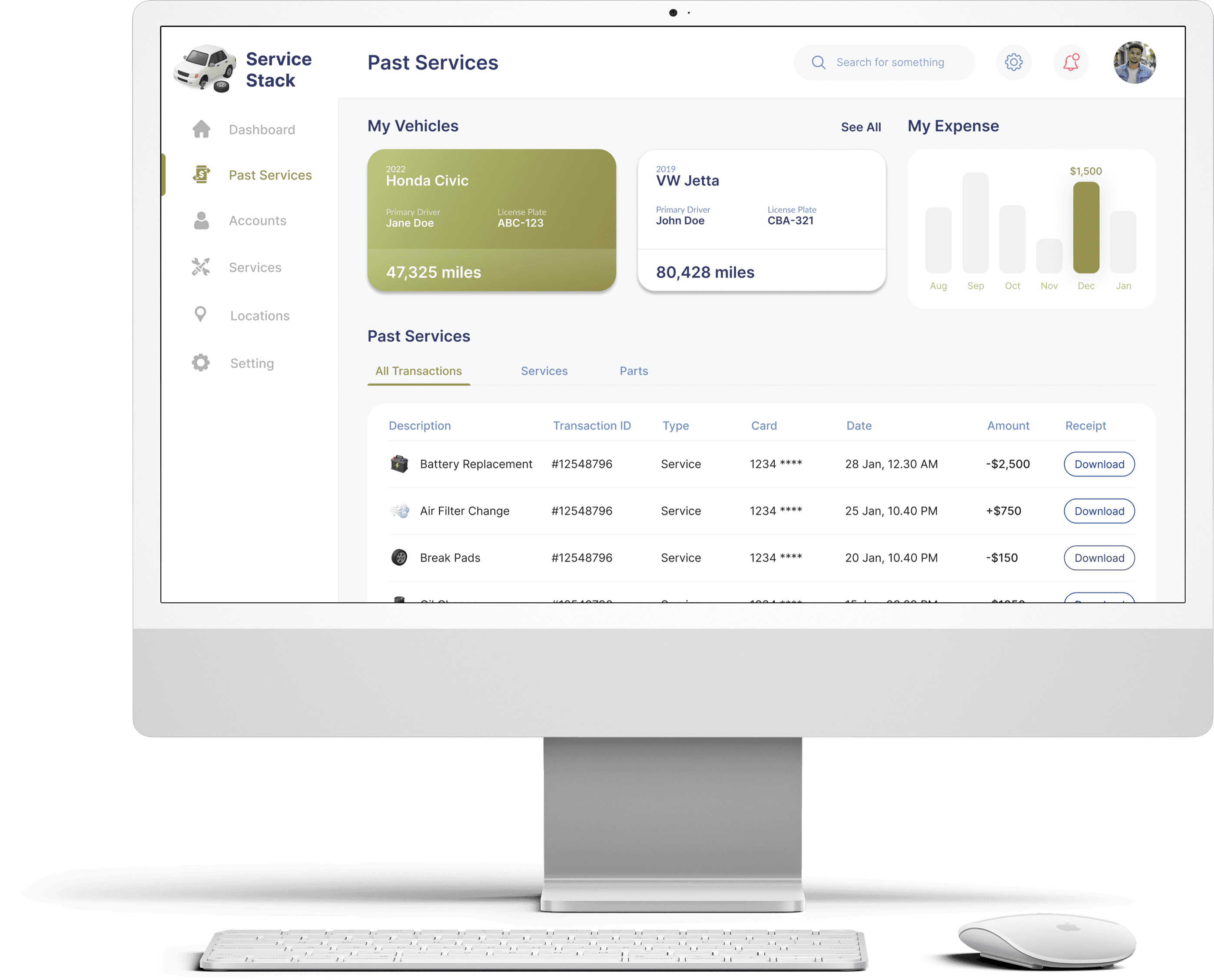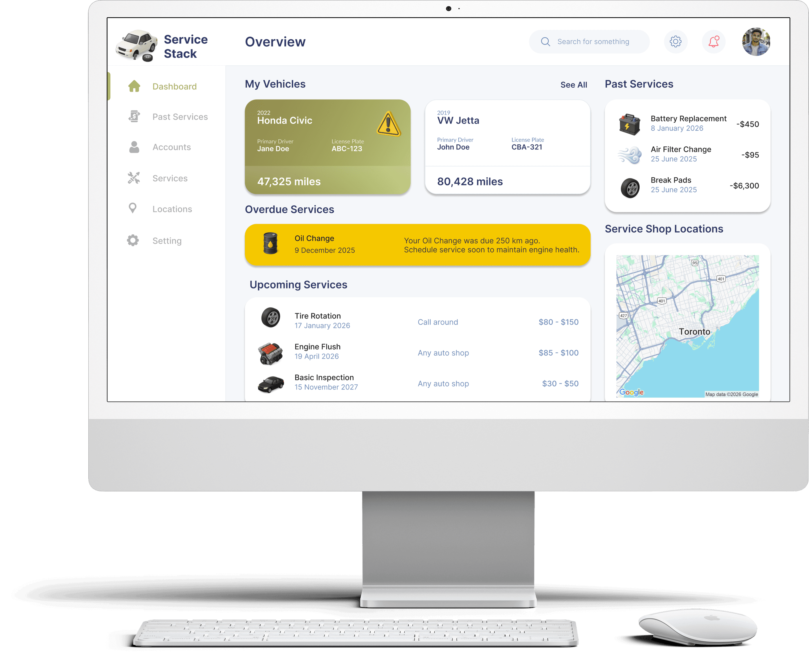 I created Service Stack, a user dashboard designed for everyday drivers. It centralizes your vehicle’s service history, reminders, and receipts, making maintenance easy to manage.